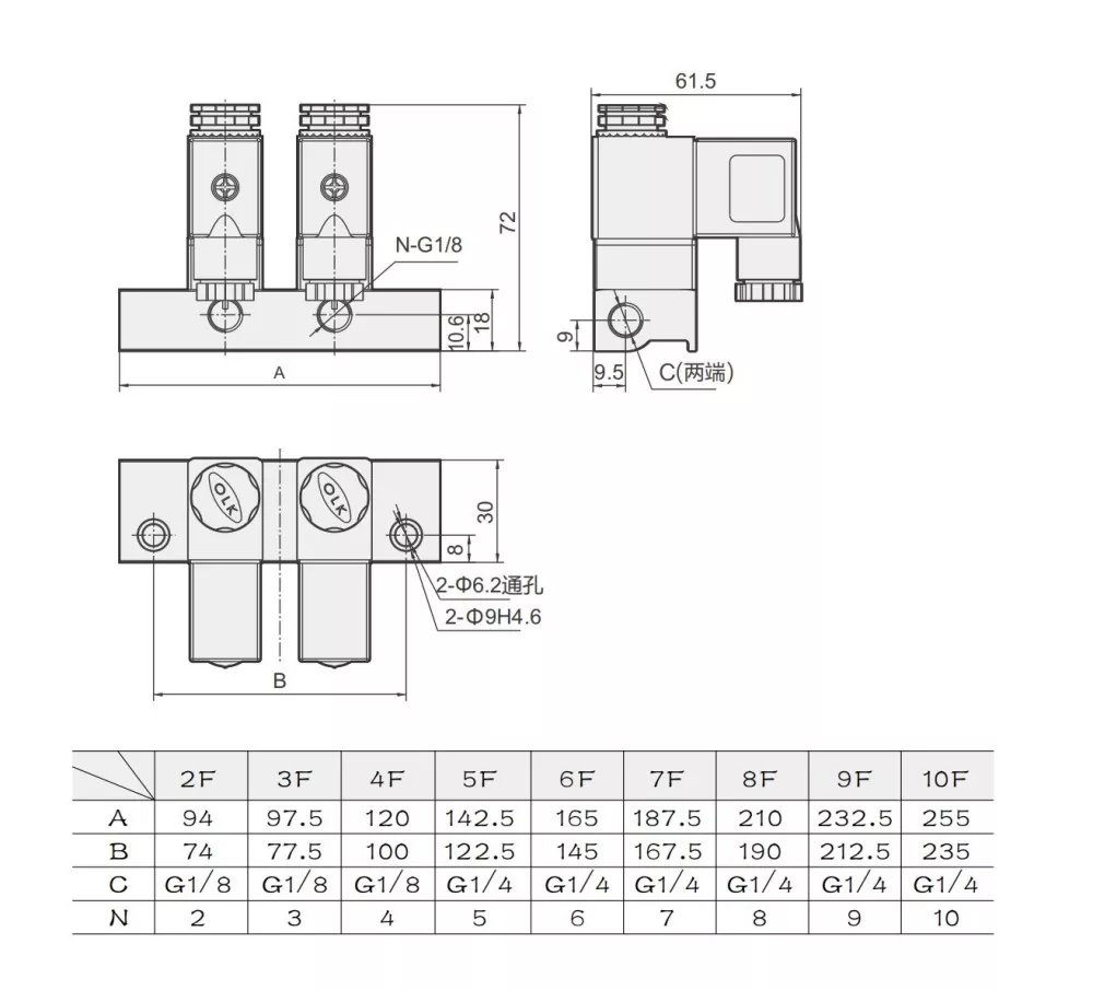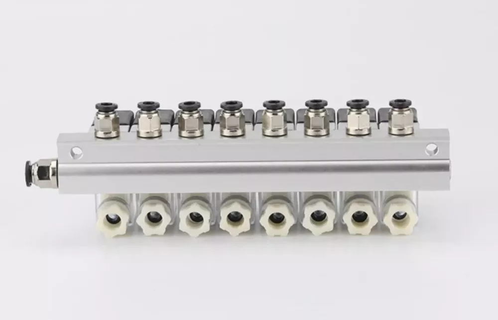 De réir na dtreoracha ionghabhála agus sceite, is féidir 2V025 Solenoid Valve Manifold a roinnt ina chineálacha brú dearfacha le inlet amháin agus il-asraonta, agus cineálacha brú diúltach le il-ionraonta agus asraon amháin. Is féidir brú diúltach a chur i bhfeidhm i gcaidéil folúis. Ós rud é go n-oibríonn brú dearfach agus diúltach i dtreonna contrártha, téigh i gcomhairle le foireann díolacháin OLK sula ndéanann tú ordú