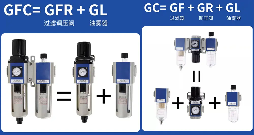GC=GF+GR+GL (Scagaire + Rialtóir neomatach + Lubricator)