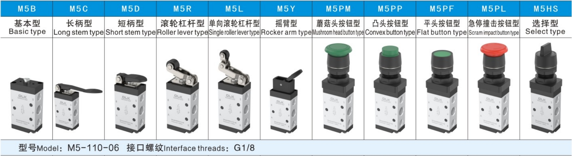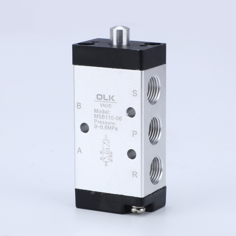 Cineál Airtac M5 Sraith 5/2 Bealach Comhla Mheicniúil Cnaipe Déanta ag OLK Aeumatic Company.M5 Is éard atá i gcomhla meicniúil ná struchtúr colún sleamhnáin.