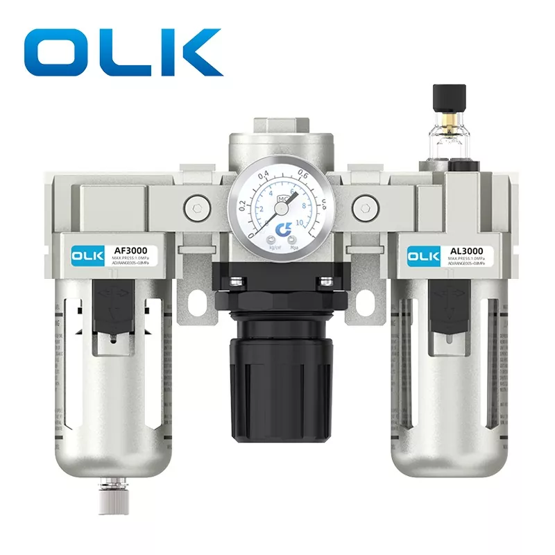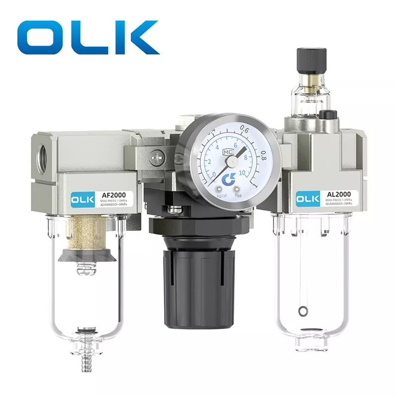 Is comhpháirt bhunúsach aeroibrithe é an tAonad SMC Cineál AC FRL (Filter-Regulator-Lubricator) a chomhtháthaíonn scagachán foinse aeir, laghdú brú agus rialáil, agus cóireáil lubrication. Soláthraíonn sé aer comhbhrúite glan, cobhsaí agus bealaithe do chórais aeroibrithe, rud a leathnaíonn saolré na gcomhpháirteanna aeroibrithe agus feabhsaítear cobhsaíocht an chórais. Feidhmíonn Aonad OLK AC Sraith FRL mar “chaomhnóir” riachtanach na gcóras aeroibrithe nua-aimseartha.