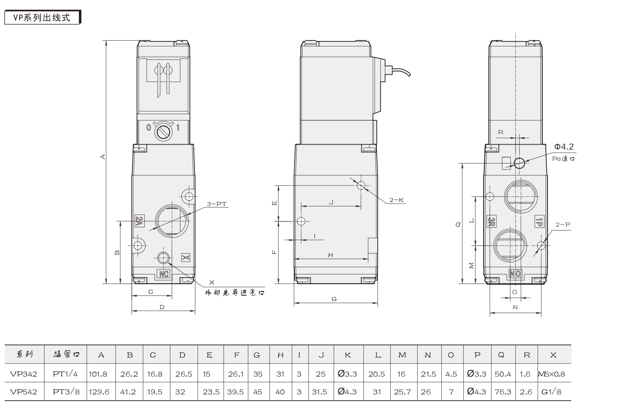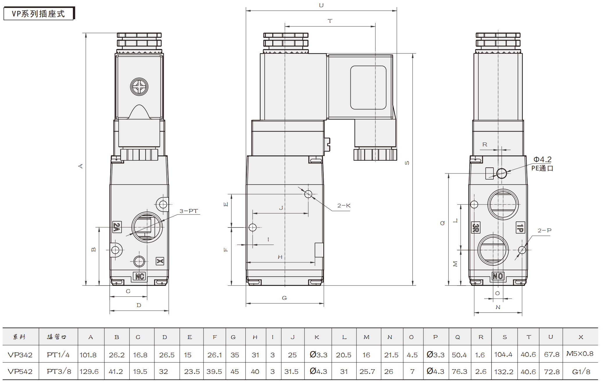 Comhlaí solenoid sraith VP 3 bhealach paraiméadair CE CERTIFICATEGEGeral